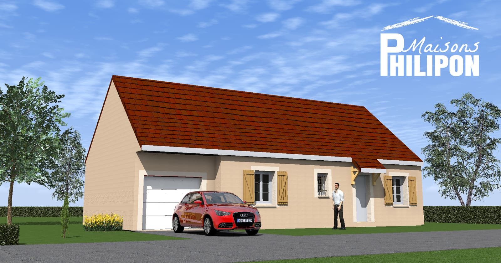 Arcy est une maison individuelle de plain-pied qui intègre un garage et un haut vent au-dessus de la porte d’entrée. Ce modèle personnalisable à votre guise peut séduire des investisseurs par le respect des normes handicapées et par un des meilleurs rapports qualité prix.